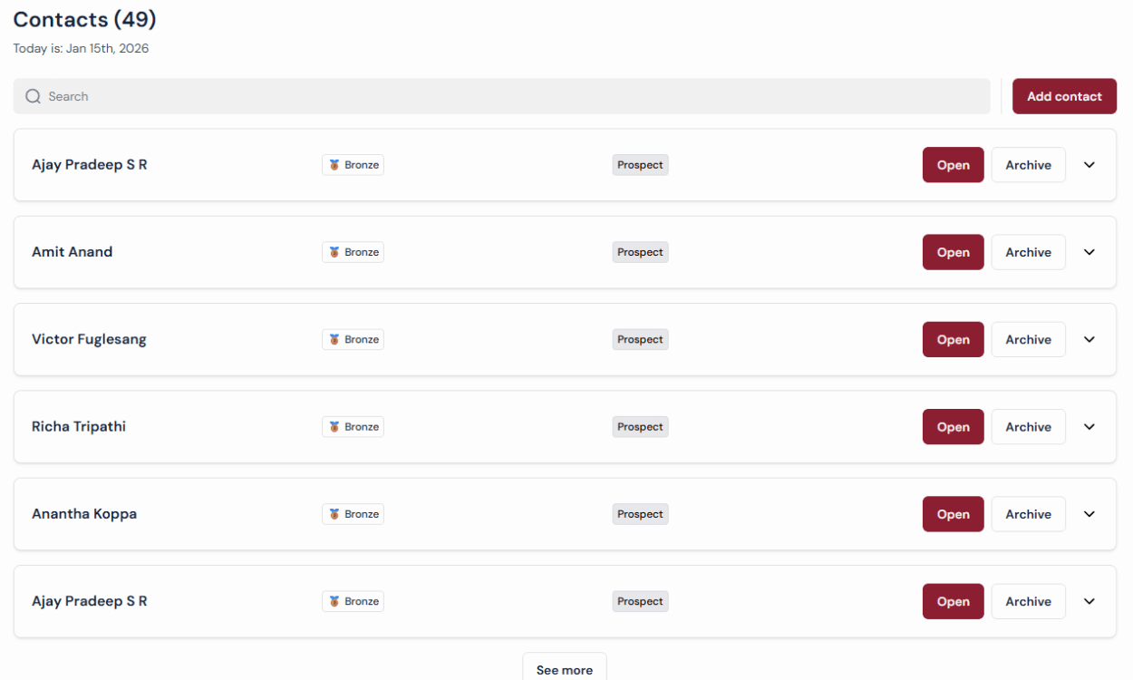→ Search by name, company, notes