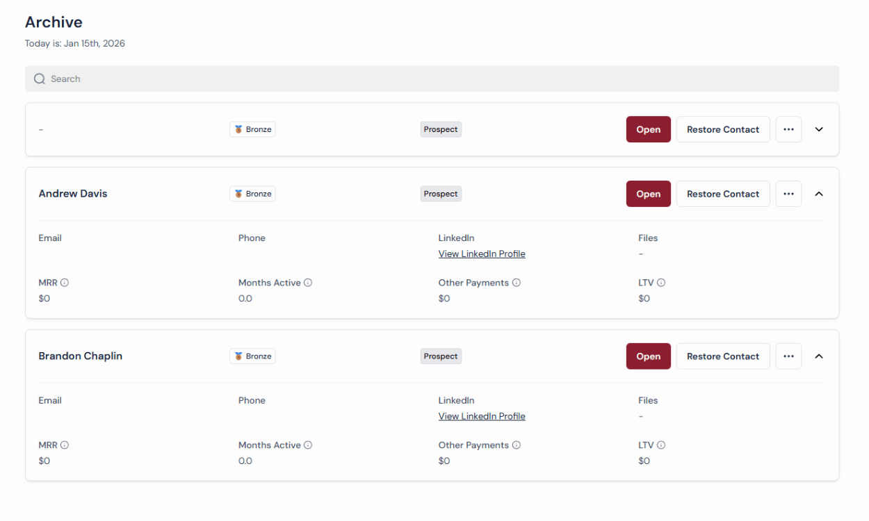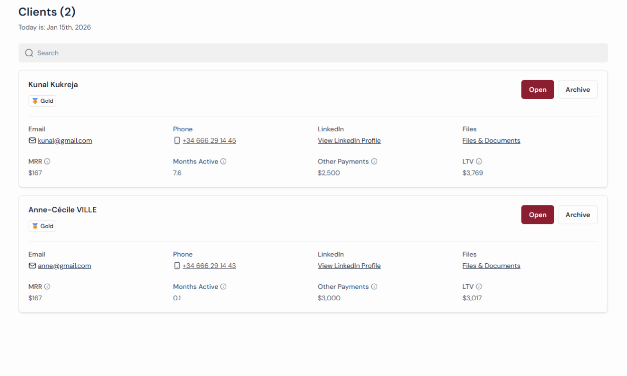 → View all: prospects, leads, clients, archived