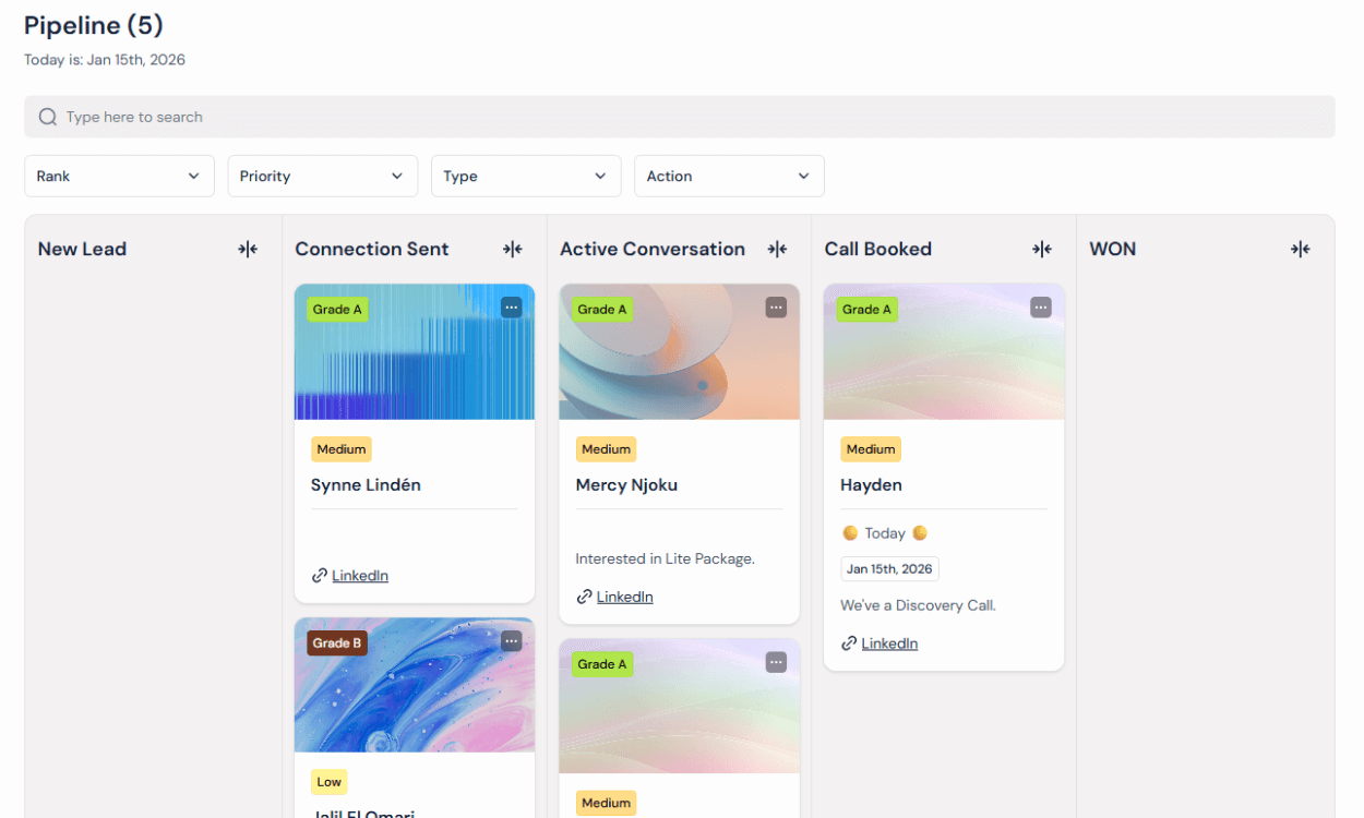 → Kanban board for ACTIVE leads